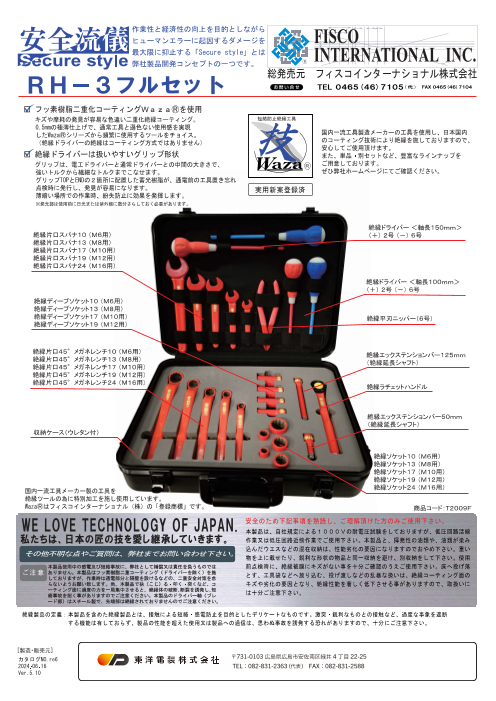 ●短絡防止絶縁工具 工具と作業者間の絶縁のみではなく、工具による短絡も防ぐことができます。 ●極薄コーティングで使いやすい 極薄フッ素二重化コーティング法により、絶縁物で工具が肥大化することを抑え、 通常工具と遜色のないサイズと使用感を実現...
