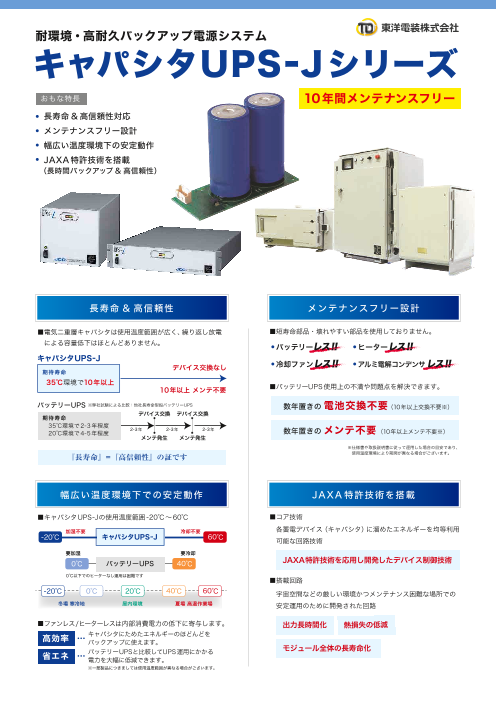 【おもな特長】 ・長寿命& 高信頼性対応 ・メンテナンスフリー設計 ・幅広い温度環境下の安定動作 ・JAXA 特許技術を搭載(長時間バックアップ& 高信頼性)