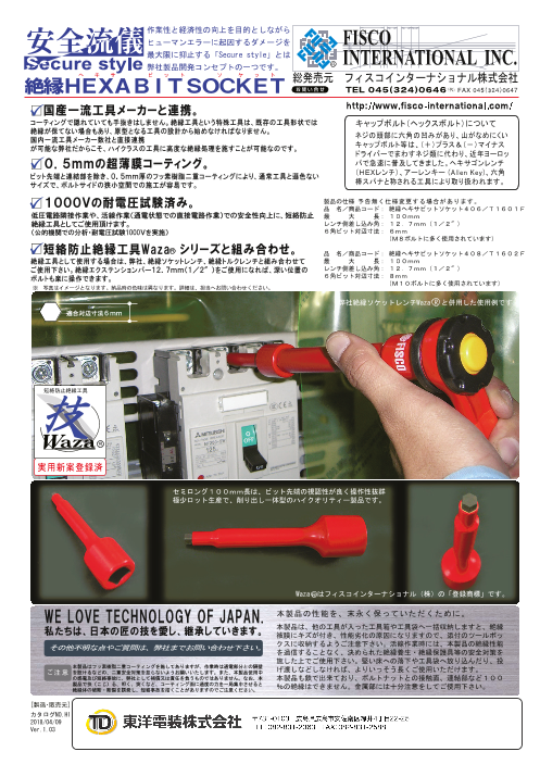 ●二重超薄膜コーティング 絶縁皮膜のフッ素樹脂は色違いの二重になっており、摩耗や浅い傷の発見を容易にしてあります。 始業点検時や作業中にキズや摩耗箇所を発見した場合、危険ですので速やかに使用を中止してください。 ●1000V耐電圧試験済み ...