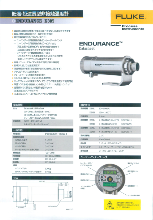 ・鏡面体(低放射率物体)で従来に比べて安定した測定ができます ・幅広い対応温度範囲:50~1000℃(E3ML) ・専用ソフトウェアのビデオ画像で測定状態の確認可 ・窓ガラス越しでも温度測定可 ◆詳細はカタログをダウンロードしてご覧ください。