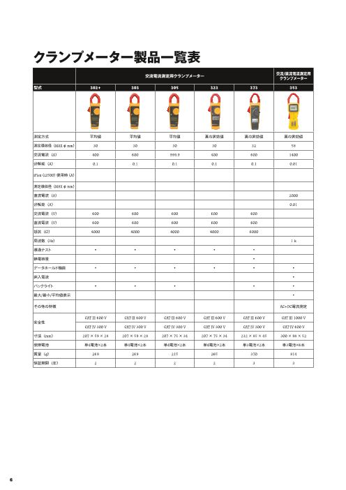 【掲載製品一例】 ・Fluke 302+、 303、 305クランプメーター Fluke 302+、303、305 は、小型で軽量かつ人間工学に基づいた設計で、確実性と正確性を備えた信頼性が高いクランプメーターです。 ・Fluke 381 リモー...