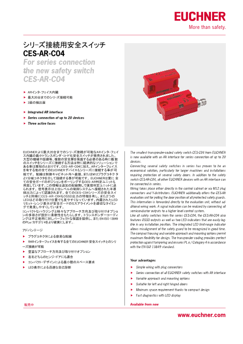CES-C14は、さまざまな業界で長い間使用されているCES-C04安全スイッチをエポキシ樹脂に封入し、厳しい環境下での使用に最適化された非接触型の安全スイッチです。 スイッチに対応するアクチュエータも同様にエポキシ樹脂に封入されており、このエポキシ樹...