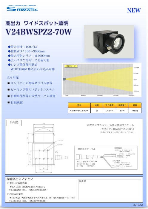 照射角度が任意に調整でき、レンズにて集光させている為、優れた均一性ももった照明器です