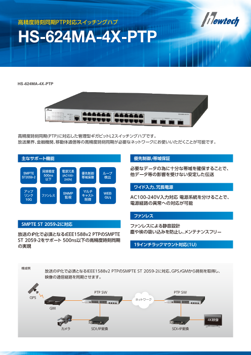 高精度時刻同期PTP対応スイッチングハブ HS-624MA-4X-PTP