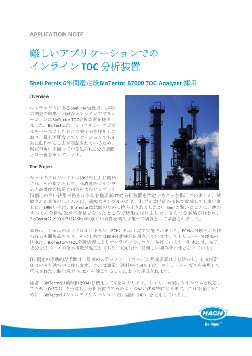 Shell Pernis 6年間選定後BioTector B7000 TOC Analyzer 採用 ロッテルダムにあるShell Pernis社は、6年間の調査の結果、困難なオンラインアプリケーションにBioTector TOC分析装置を採用...