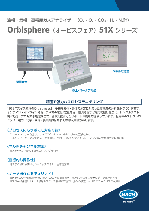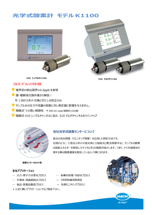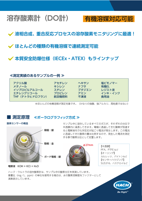 ppbレベルの酸素濃度センサー(液相、気相対応)で有機溶媒にも実績のあるHachのオ...