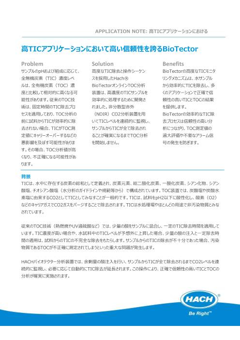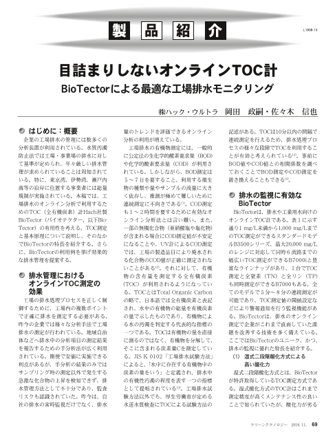 本稿では、工場排水のオンライン分析で利用するためのTOC(全有機炭素)計Hach社製BioTector(バイオテクター、以下BioTector)の有用性を考える。TOC測定と基本原理について説明し、そのなかでBioTectorの特長を紹介する。さらに、B...