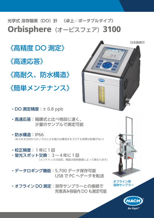 従来の隔膜式と比較して高精度かつ高速応答な溶存酸素測定(DO測定)を可能にした光学式センサーを搭載したポータブルタイプの溶存酸素計(DO計)です。 ◆高速応答 ◆高耐久、防水構造 ◆低メンテナンス ◆DO測定精度:±0.8ppb ◆高速応答...