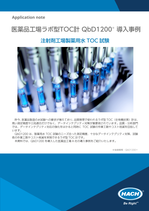 ◆嫌気性消化処理制御における信頼 従来から嫌気性処理に用いられている高コストまたは測定結果に時間の掛かる測定手法は時として適切なモニタリングをしていないことが知られています。このことから、このアプリケーションに特化して開発されたEZ7250VFA...