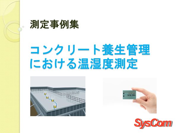 コンクリートの養生における温湿度管理は非常に重要です。 弊社の製品の中でその用途に選ばれてきたセンサやロガーをご紹介しています。 ぜひ、ダウンロードして御覧下さい。