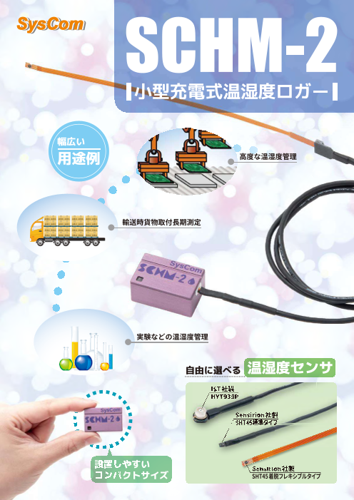 シスコムでは様々な環境で温湿度が測定できるよう、センサケーブルに工夫を施しています。 測定環境にあったセンサケーブルを選択して今まで出来なかった温湿度測定を実現できます。 ●SHT45(Sensirion社製) ±1.0%RHの高精度(相対...