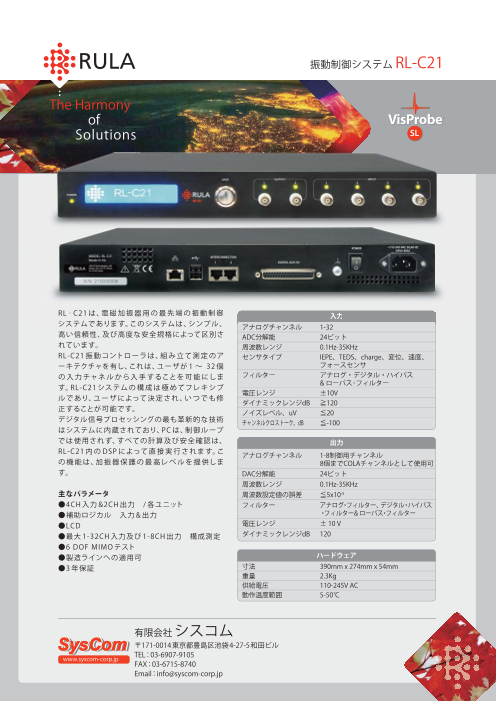 デジタル信号プロセッシングの最も革新的な技術がシステムに内蔵されており、PCは、制御ループでは使用されず、すべての計算及び安全確認は、RL-C21 内 の DSP により直 接 実 行 されます。この機能は、加振器保護の最高レベルを提供します。