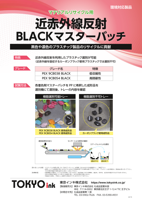 近赤外線を利用した使用済みプラスチックの選別が可能なBLACKマスターバッチです。 黒色や濃色の成形品は色材として安価で着色力が強いカーボンブラックが広く使用されています。 しかし、カーボンブラックは近赤外線を吸収する性質があるため、近赤外線の反射を...