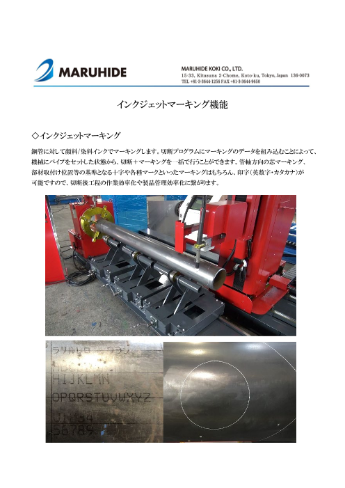 丸秀製のパイプ自動切断機:パイプコースターのオプション機能、インクジェットマーキングについてご紹介いたします。 YouTubeでは動画もご覧いただけます、ぜひご覧ください。