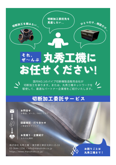 切断加工にお困りではありませんか? その加工、丸秀工機にお任せください!または、丸秀工機のネットワークを駆使して、最適なパートナー企業様をご紹介いたします。 【流れ】 お問合せ~お電話、メール(SNSのDM可)、FAXにて受付いたします 図面...