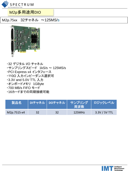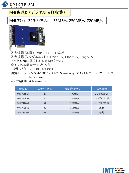 DI M4i.77xx 32チャネル、125MB/s, 250MB/s, 720...