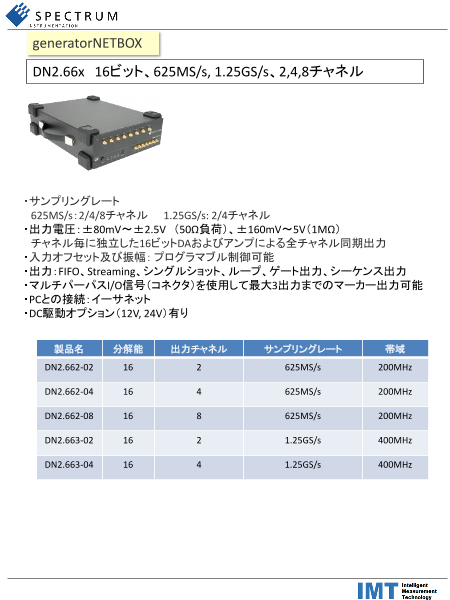 AWG NETBOX DN2.66x 16ビット、 625MS/s, 1.25GS/s、2,4,8チャネル