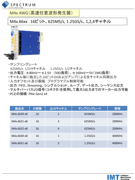 AWG M4x.66xx 16ビット、 625MS/s, 1.25GS/s、1,2,4チャネル