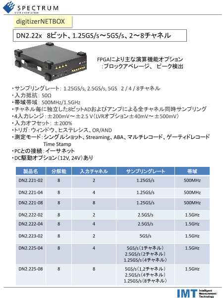 デジタイザNETBOX DN2.22x 8ビット、1.25GS/s~5GS/s、2~8チャネル