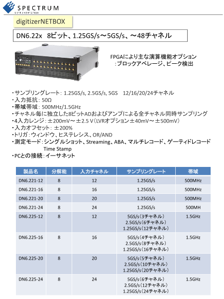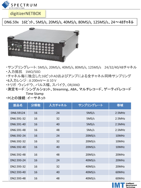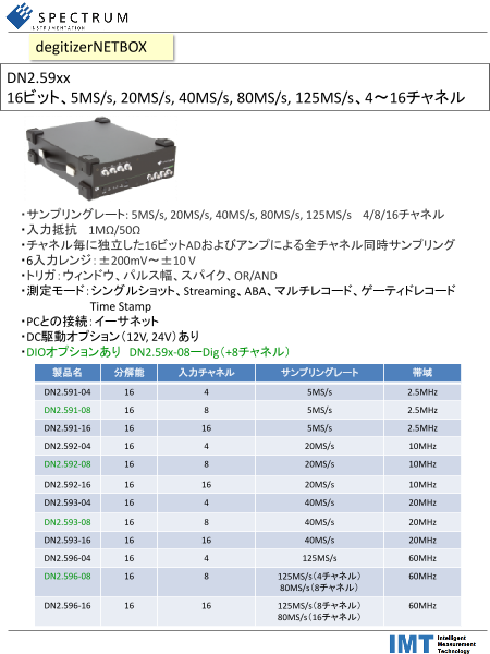 デジタイザNETBOX DN2.59x 16ビット、5MS/s, 20MS/s, 40MS/s, 80MS/s, 125MS/s、4~16チャネル