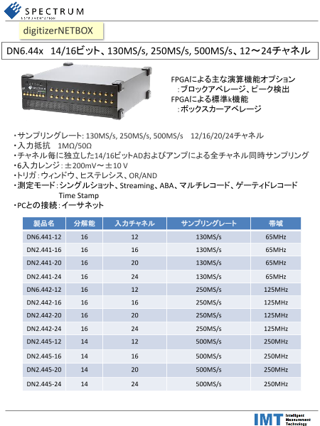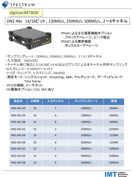 デジタイザNETBOX DN2.44x 14/16ビット、130MS/s, 250MS/s, 500MS/、2~8チャネル