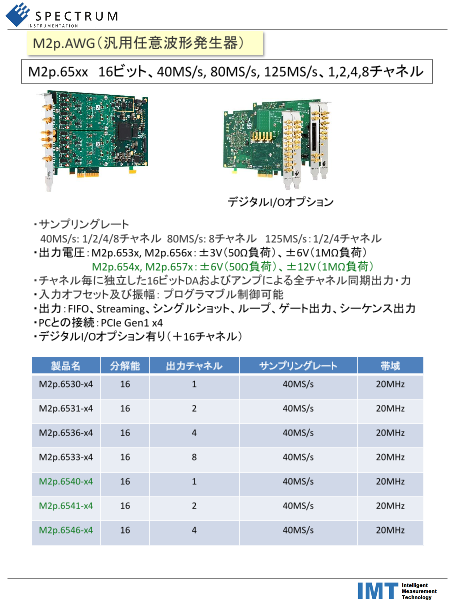 AWG M2p.65xx 16ビット、 40MS/s, 125MS/s、1,2,4,8チャネル