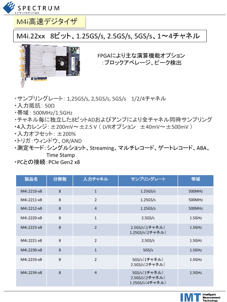 デジタイザ M4i.22xx 8ビット、1.25GS/s, 2.5GS/s, 5G...