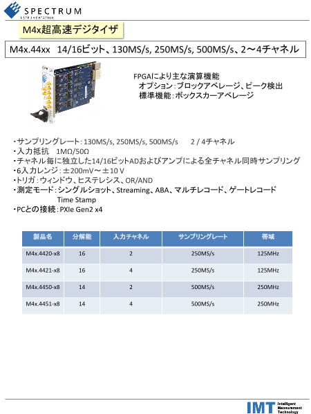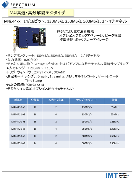 デジタイザ M4i.44xx 14/16ビット、130MS/s, 250MS/s, 500MS/s、2~4チャネル
