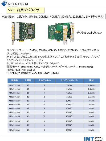 デジタイザ M2p.59x 16ビット、5MS/s, 20MS/s, 40MS/s, 80MS/s, 125MS/s、1~8チャネル