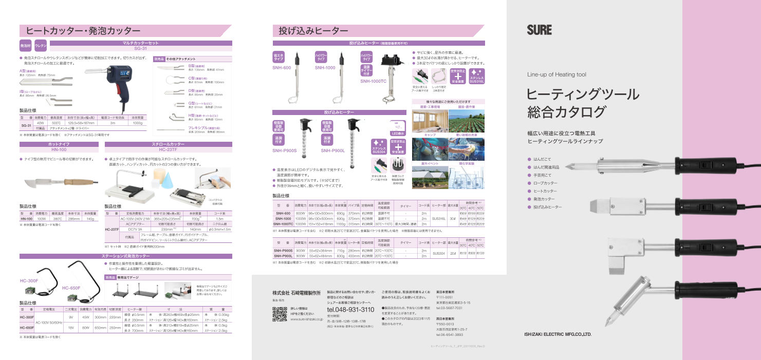 掲載製品 ・はんだこて 一般工作/電子機器/板金用 ・ヒートカッター ・発泡カッター ・ロープカッター ・投込みヒーター ・手芸用こて ◆詳細はカタログをダウンロードしてご覧下さい。