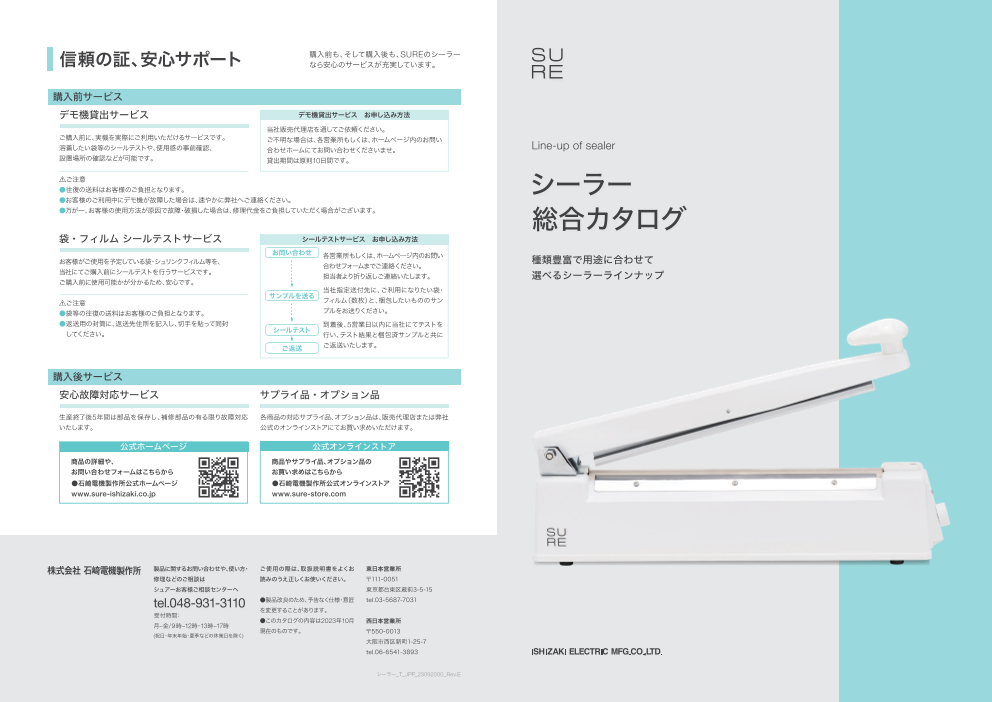 掲載製品 ・卓上シーラー ・卓上長尺シーラー ・フリーハンドシーラー ・オートシーラー ・スタンドシーラー ◆詳細はカタログをダウンロードしてご覧下さい。