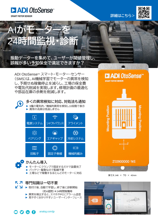 スマート・モーター・センサー(SMS)は、AI機械学習でモーターの異常を検知し、予期...