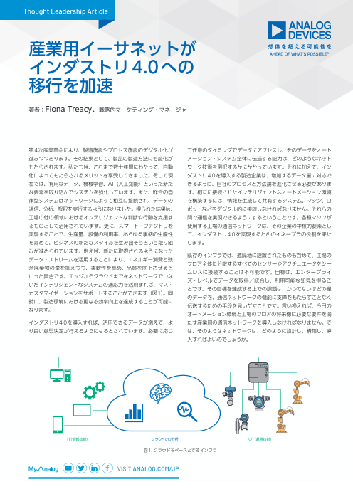インダストリ4.0やスマート・ファクトリに関してメーカーが抱える通信上の重要課題を解決するために、産業用システムにイーサネット接続を採用する例が増えています。このような課題として、データ統合、同期、エッジ接続、システムの相互運用性などがあります。 ...