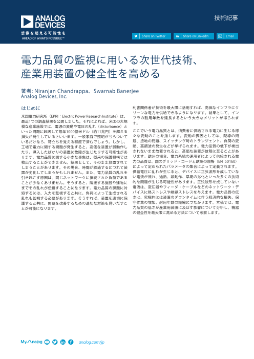 電力品質の低さは、究極的には装置のダウンタイムに伴う経済的な損失、保守作業の増加、耐用年数の短縮につながります。本稿では、電力品質の低さが産業用装置に及ぼす影響について分析し、機器の健全性を最大限に高める方法について考察します。