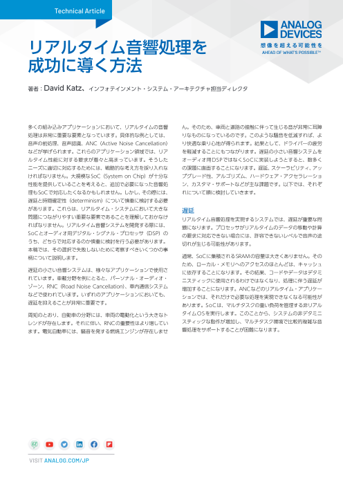 大規模なSoC(System on Chip)が十分な性能を提供していることを考えると、追加で必要になった音響処理もSoCで対応したくなるかもしれません。しかし、その際には、遅延と時間確定性(determinism)について慎重に検討する必要があります。...