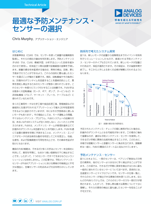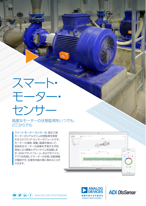 スマート・モーター・センサーは、低圧三相 モーターのリアルタイム状態監視を実現 するコネクテッド・センサーモジュールです。 モーターの温度、振動、磁場を検出して、 致命的なモーターの故障を予測する予知 保全により障害とダウンタイムを回避しま す。 ...