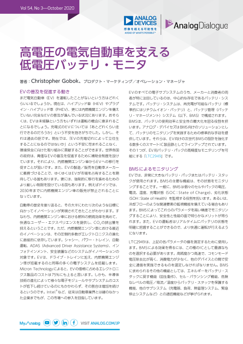 電気自動車は、非常に大きなバッテリ・パックまたはバッテリ・スタックを搭載しています。その状態をモニタリングするために使用されるのが、バッテリ管理(バッテリ・マネージメント)システムです。通常、バッテリ管理システムは、個々のセルやパックの電圧、電流、温度、...
