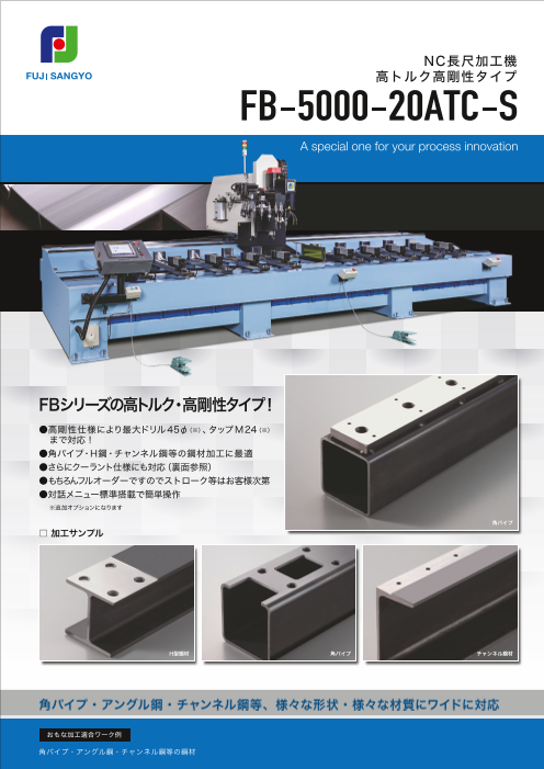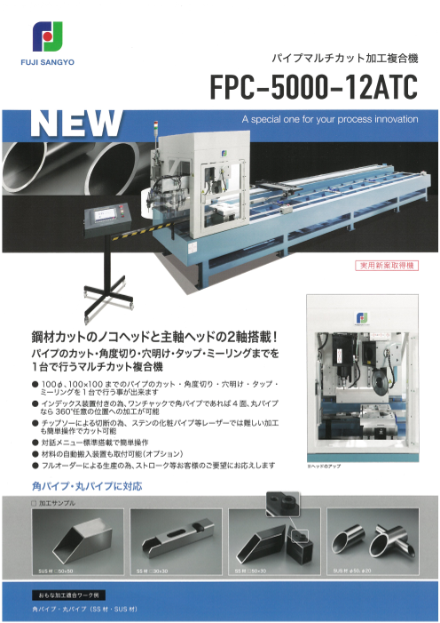 ・パイプのカット・角度切り・穴開け・タップ・ミーリングまでを1台で行うマルチカット複合機 ・小径パイプ(70φ、70×70まで)のカット・角度切り・穴開け・ミーリングを行う複合機 ・インデックス装置付き定寸装置により任意の角度振りによる加工が可能 ...