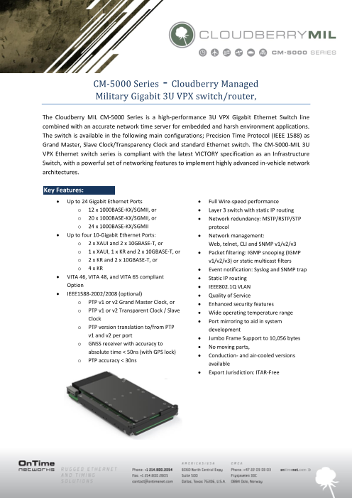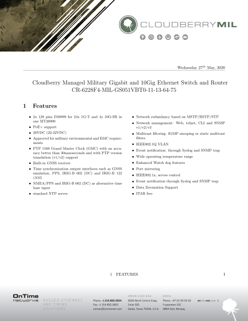 ■OnTime Networks社製品の特長■ ・4-52ポート、用途に応じた製品ラインナップ ・欧米の空・陸で実績多数の堅牢製品 ・IEEE1588規格策定に関わった高い技術力 ■主な製品仕様 ・VITA 46/VITA ...
