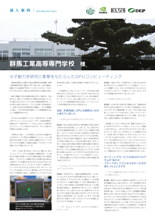 国立高等専門学校機構・群馬工業高等専門学校で機械工学科の助教を務める矢口久雄氏が大きな研究テーマとして掲げるのが「分子動力学シミュレーションによるナノスケール熱流体解析」。この研究に、G-DEPが提供する、イン ハウスプログラムをCUDA化する「ポーティ...