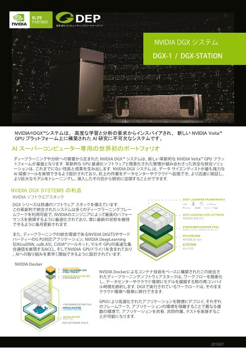 NVIDIA®DGX™システムは、高度な学習と分析の要求からインスパイアされ、新しいNVIDIA Volta™ GPU プラットフォーム上に構築されたAI 研究に不可欠なシステム