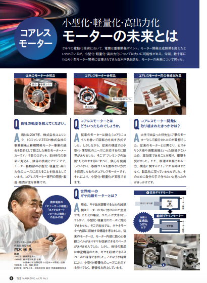 【掲載内容】 クルマの電動化技術において、電費は重要開発ポイント。モーター開発は成熟期を迎えたといわれているが、小型化・軽量化・高出力化については大いに可能性がある。今回、数十年にわたり小型モーター開発に従事されてきた白木学氏を訪ね、モーターの未来につ...
