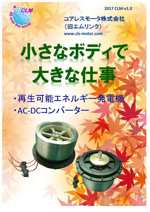 製品の強み、特性および用語の説明、はじめに、事例集、各製品の図面および電圧、出力、トルクなどを記載しております。