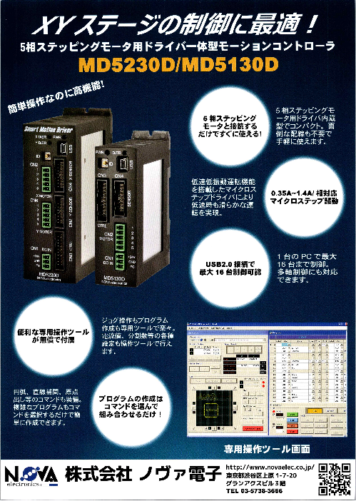 ・5相ステッピングモータと接続するだけですぐに使える! ・0.35A~1.4A/相対応マイクロステップ駆動 ・USB2.0接続で最大16台制御可能 ・便利な専用操作ツールが無償で付属 ◆詳細はカタログをダウンロードしてご覧下さい。