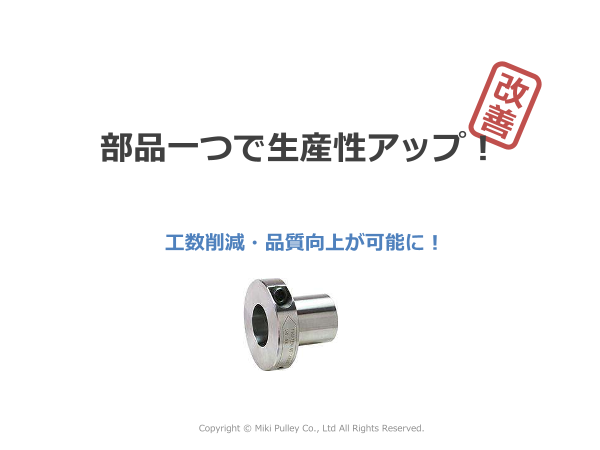 飛躍的な作業効率の向上をETPブッシュで実現 「正確」:軸方向・回転方向に自在な位相合せで的確に締結 「簡単」:ハイドロ方式による均一な加圧でスキル不要の簡単取り付け 「スピーディー」:ボルト1本による短時間の締結 「安全」:圧力媒体には安全性の...