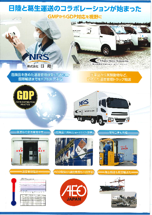◆日陸..... 危険品を含めた温度管理保管・流通加工・国際輸送までをドアtoドア手配 →特に消防法の危険物に該当する医薬品類の保管はお任せください。 ◆葛生運送..... 医薬品から実験動物など、徹底した温度管理トラック輸送 →繊細な医薬品輸...