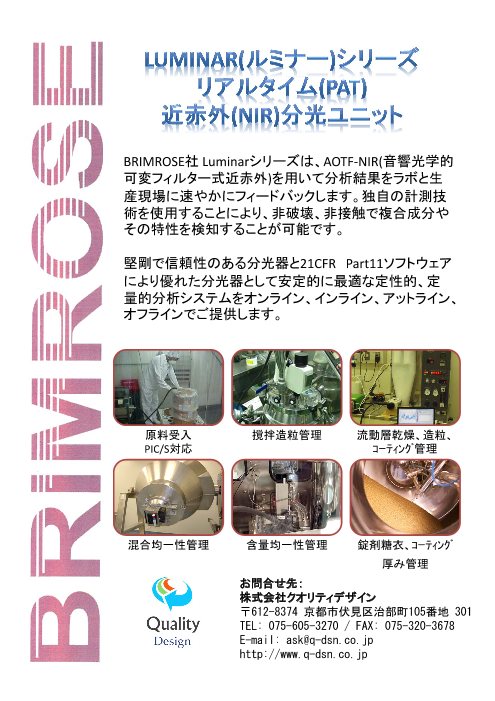 BRIMROSE社 Luminarシリーズは、AOTF‐NIR(音響光学的可変フィルター式近赤外)を用いて分析結果をラボと生産現場に速やかにフィードバックします。 独自の計測技術を使用することにより、非破壊、非接触で複合成分や その特性を検知...