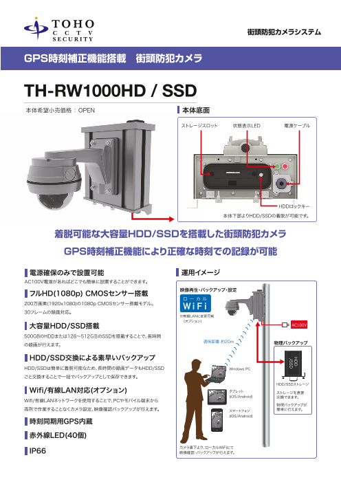 着脱可能な大容量HDD/SSDを搭載した街頭防犯カメラ GPS時刻補正機能により正確...