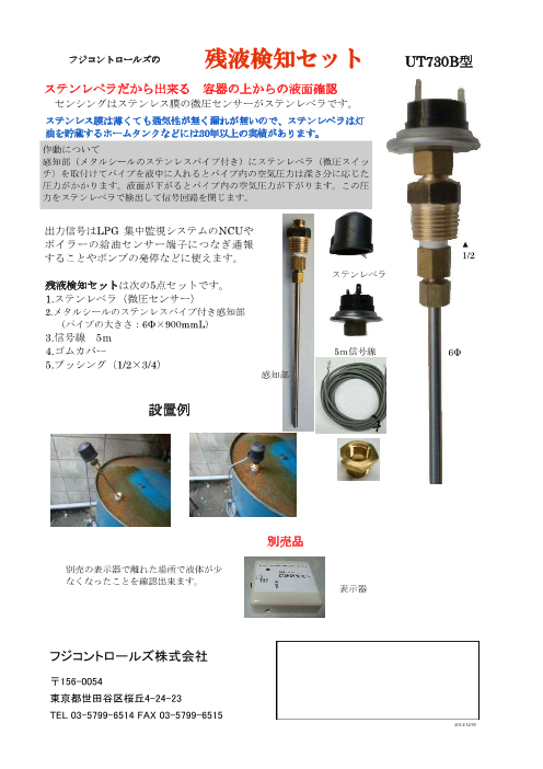 掲載内容 ・UT330A51 ・UT728B51 (チューブ方式) ・圧送式タンクの場合 UT728B51(チューブ保護管付) ・UT730B51 (SUSパイプ) ◆詳細はカタログをダウンロードしてご覧下さい。