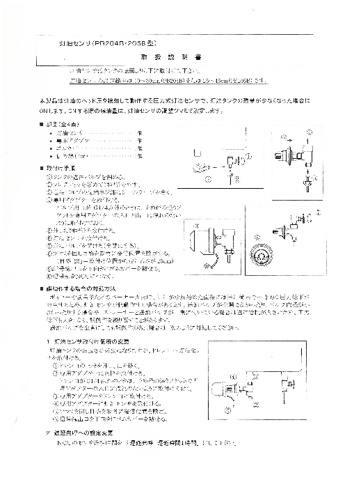 灯油のヘッド圧を検知して動作する圧力式灯油センサの取扱説明書です。